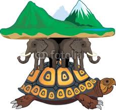 “Why, the elephant is standing on a turtle”, answers the first.