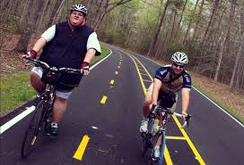 together. People are out running, some riding their bikes, as if training for a